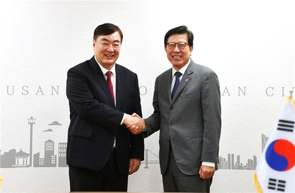 박형준 부산시장이 26일 시청 국제의전실에서 싱하이밍(邢海明) 주한중국대사를 만나 부산-중국 간 상호 교류 및 협력 방안을 논의했다.