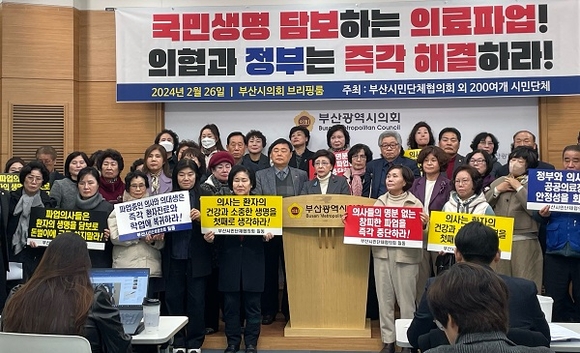 전공의 집단 이탈 사태로 인한 의료 공백이 심화되는 가운데 부산 시민단체들이 의사들의 집단 파업을 규탄하고 나섰다.