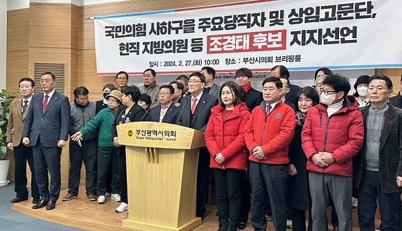 부산 사하구을 주요 당직자 및 현직 구의원 일동은 27일 오전 부산시의회 브리핑룸에서 조경태 후보 지지를 공식 선언했다.