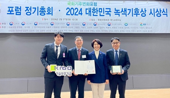 기술보증기금이 국회기후변화포럼이 주최한 ‘2024 대한민국 녹색기후상’ 시상식에서 녹색금융·보험 부문 금융위원장상을 수상했다고 28일 밝혔다.