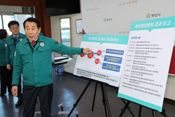 이어 동부양산의 응급의료 공백으로 인한 시민들의 피해를 최소화하기 위해 응급환자 발생시 환자 이송, 서부양산 응급의료기관과의 업무협약, 기존 병원급 의료기관 응급실 설치 독려 등의 종합대책을 발표했다. 또 웅상중앙병원 진료기록부 등은 법에 따라 웅상보건지소로 이관해 민원 발생을 최소화할 방침이다.