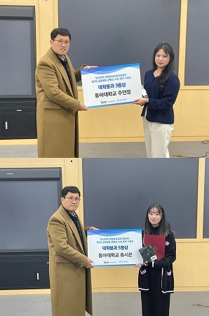 동아대 윤다빈 박사과정생과 주연정 학생, 김유민 학생, 유시은 학생이 2~5등상을 받았다.