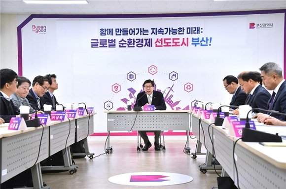 이번 회의는 글로벌 허브도시로서 자원순환 분야를 선도하기 위해 마련한 정책인 ‘자원 재활용 메카도시, 부산 먼저 순환경제로’를 발표하고 민·관·산·학 전문가들과 구체적인 추진방안 등을 논의하기 위해 마련됐다.