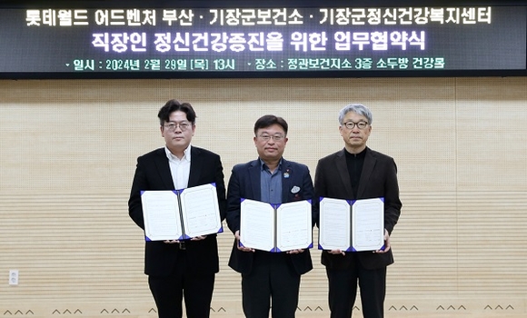 롯데월드 어드벤처 부산이 29일 기장군보건소, 기장군 정신건강복지센터와 근로자 정신 건강 유지 및 증진을 위한 3자 업무 협약을 체결했다고 밝혔다.
