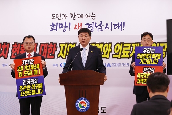 최 회장은 4일 경남도청 프레스센터에서 기자회견을 갖고 “저는 오늘 지역 경제계를 대표해 정부와 의료계의 팽팽한 대립으로 생겨난 의료공백에 대해 안타까운 마음과 무거운 책임감으로 이 자리에 섰다”면서 “지금은 정부와 의료계가 힘을 합쳐 지역 간 의료 불균형을 해소하는데 노력해야할 때이지 각자의 논리를 강조하며 분열할 때가 아니다”고 호소했다.
