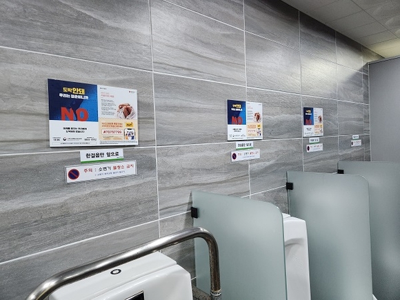 양기관은 지난 1월 공단 서면사업소 고객화장실 현장 실사후 14개소를 활용키로 하고 최근 캠페인 시안을 확정, 제작·부착하는 등 연중 상시 홍보에 들어갔다.