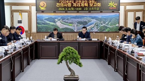 경남 합천군은 지난 4일 군청 소회의실에서 2024년 군민과의 대화에서 건의된 사항에 대한 처리계획 보고회를 가졌다.