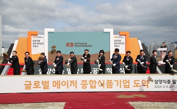 이날 착공식에는 김정수 삼양라운드스퀘어(주) 부회장, 김동찬 삼양식품 대표이사를 포함해 김명주 경남도 경제부지사, 권재한 농림축산식품부 농업혁신정책실장, 허동식 밀양시장 권한대행, 허홍 시의장, 김춘진 한국농수산식품유통공사(AT) 사장, 정희민 포스코이앤씨 부사장 및 삼양식품 임직원 등이 참석했다.