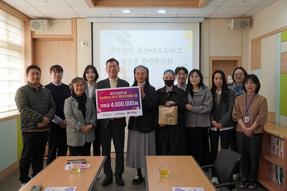 부산테크노파크(부산TP)가 지난 8일 서구 마리아 모성원을 찾아 미혼모 가정 지원을 위한 기부금 400만원을 전달했다고 밝혔다.
