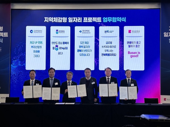 부산시는 15일 세종 코트야드 바이 메리어트 호텔에서 고용부를 비롯해 프로젝트에 함께 선정된 인천, 충북, 경북, 전북과 지역별 프로젝트의 원활한 추진 등을 다짐하는 업무협약을 체결했다.
