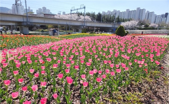 부산시 낙동강관리본부가 오는 16일부터 화명생태공원 내 꽃단지(P1 주차장 맞은편)에서 7만 송이 규모의 화려한 튤립 군단을 만나볼 수 있다고 밝혔다.