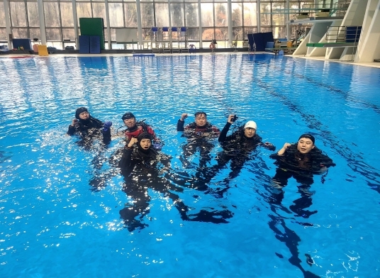 훈련 내용은 ▲기초생존수영(입영), 구조수영(스킨, 스쿠버장비) ▲수중구조훈련(기초 스쿠버 기술 및 수중탐색 훈련) 등이다.