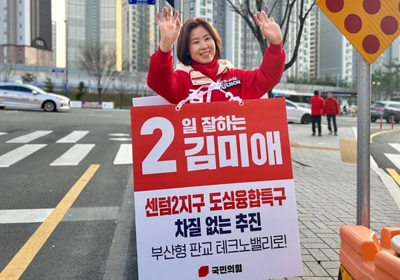 부산 해운대을 국민의힘 김미애 후보가 15일 ‘센텀2지구 도심융합특구 차질 없는 추진’을 제1호 공약으로 발표했다.