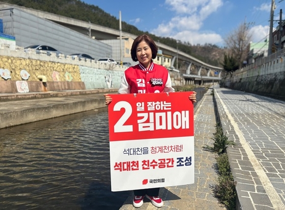 김미애 후보는 “석대천(반송천) 친수공간 조성사업의 1구간 공사가 연내 착공 예정”이라며 “2·3구간 공사도 차질 없이 진행될 수 있도록 부산시·해운대구청과 긴밀히 협력하겠다”고 설명했다.