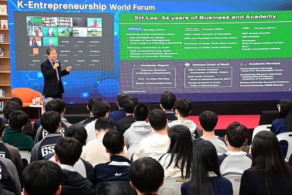 연사로 나선 이승한 회장은 '삼성의 기업가정신과 K-경영 모델'을 주제로 특별강연을 했다.