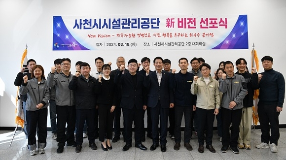 사천시시설관리공단은 지난 19일 본부 대회의실에서 경영혁신 추진과 미래로의 도약을 다짐하는 '신(新)비전 선포식'을 가졌다.