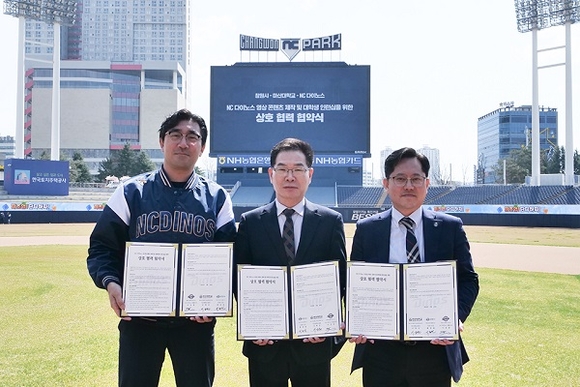 협약식에는 박동진 문화관광체육국장, 이상원 마산대 산학협력처장, 이진만 NC다이노스 대표이사 등이 참석했다.