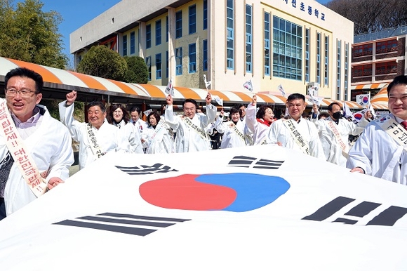 이날 행사는 3·1운동 기념비 헌화를 시작으로 기미년 당시 어린 학생들이 축구경기를 하던 중 첫 골이 터지는 것을 신호로 가슴에 품었던 태극기를 꺼내 대한독립만세를 외치는 상황 재현, 시가지 행진 등의 순으로 진행됐다.