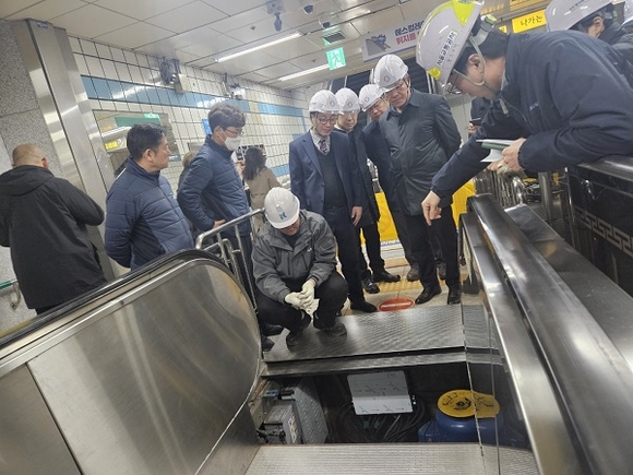 한국승강기안전공단(KoELSA) 비상임이사들이 지하철역사 에스컬레이터 자체점검 현장을 찾아 현장경영을 22일 실시했다.