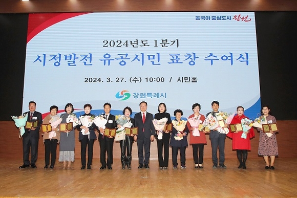 경남 창원시는 27일 오전 10시 시청 시민홀에서 '2024년도 1분기 시정발전 유공시민 표창 수여식'을 가졌다.