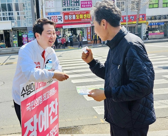 그러면서 “이번 기회에 광안리를 세계 최고의 관광지이자 수영구 성장 동력으로 삼아야 한다”며 “장예찬은 민주당과 치열한 공약 대결로 수영구 주민들의 선택을 받겠다”고 호소했다.