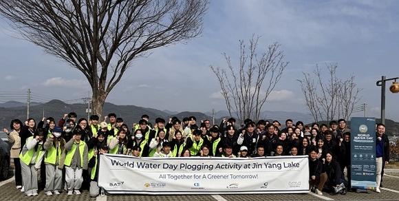 BAT코리아제조(BAT 사천공장)가 지난 22일 '세계 물의 날'을 맞아 경남 진주시 진양호 일대에서 임직원 플로깅 행사를 가졌다.