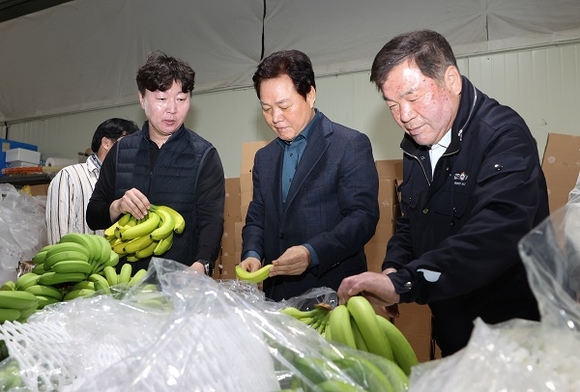 이날 도지사가 찾은 '올 바나나'는 제주도에서 재배기술을 직접 배워 온 강승훈 대표가 산청에 정착해 일군 바나나 농장이다. 강 대표의 농장은 내륙 최초의 바나나 농장이며, 우리나라 최초의 유기농 인증 바나나로 연중 160톤을 생산해 농협 하나로마트, 학교급식, 온라인으로 판매하고 있다.
