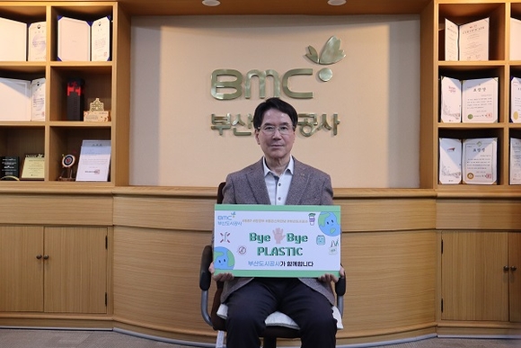 부산도시공사 김용학 사장이 지난 26일 환경부 주관 범국민 실천 캠페인 ‘바이바이 플라스틱 챌린지(Bye Bye Plastic·BBP)’에 동참했다.