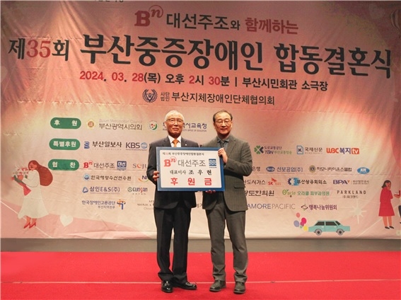 ‘부산중증장애인 합동결혼식’은 부산지체장애인단체협의회가 경제적 어려움으로 결혼식을 올리지 못한 중증장애인들을 위해 마련된 행사다. 1987년 15쌍을 시작으로 총 210쌍이 연을 맺었으며 대선주조는 2014년부터 올해까지 58쌍의 결혼식을 후원했다.