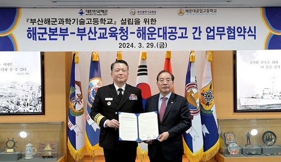 시교육청과 해군본부는 이번 협약을 통해 ‘(가칭)부산해군과학기술고등학교’ 설립을 위해 협력하기로 했다.