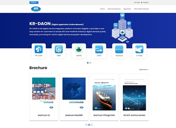 KR 고객들은 선박관리시스템 e-Fleet부터 △협약전산프로그램 KR-CON △온실가스포털시스템 KR-GEARs △기자재 검사‧승인 프로그램 e-MESIS에 이르기까지 필요한 서비스를 DAON에서 확인하고 서비스 신청을 체계적으로 할 수 있다.