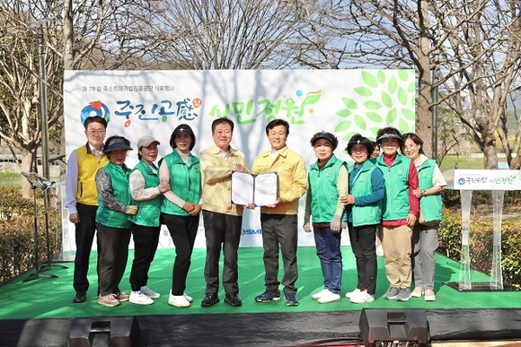 이날 행사는 식목일을 맞아 강석진 중진공 이사장, 조규일 진주시장을 비롯해 허현철 교통환경산림국장, 지역주민 및 임직원 등 60여명이 참여했다.