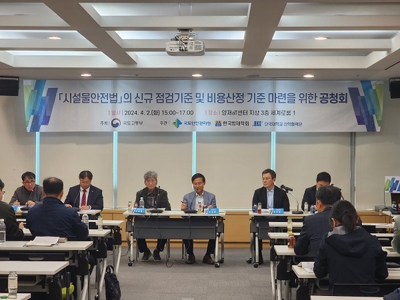 국토안전관리원이 지난 2일 서울 양재동 aT센터에서 시설물안전법의 신규 점검 기준 및 비용산정 기준 마련을 위한 공청회를 개최했다고 밝혔다.