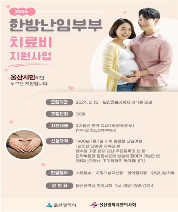 울산시는 난임부부를 위해 ‘한방 난임치료 지원사업’을 추진하고 있다고 4일 밝혔다.