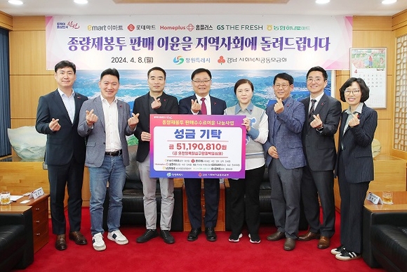 경남 창원특례시는 8일 시청 접견실에서 관내 대형유통업체 16개소에서 기탁한 '종량제봉투 판매이윤 나눔사업' 성금 5119만 810원 기탁식을 가졌다고 밝혔다.