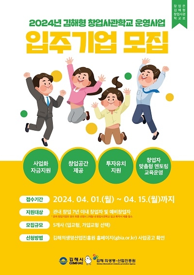 "우수 창업기업 육성" 김해시, 김해형 창업사관학교 입주사 모집
