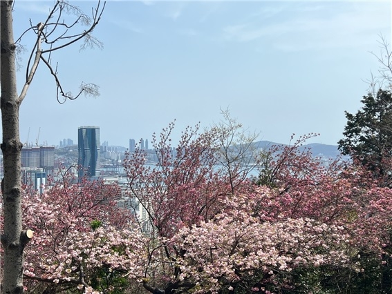 부산 대표 사적문화공원인 중앙공원에 겹벚꽃이 꽃망울을 터트렸다.