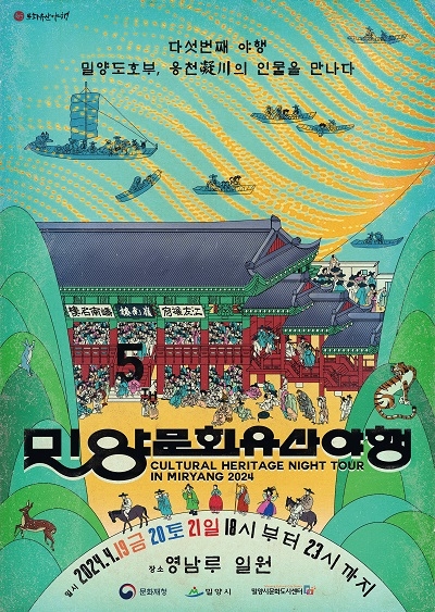 경남 밀양시가 주최하고 밀양시문화도시센터가 주관하는 '2024 밀양문화유산야행'이 오는 19일부터 21일까지 오후 6시~오후 11시에 영남루와 밀양강 일원에서 펼쳐진다.