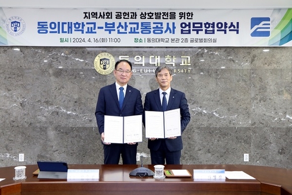 부산교통공사가 동의대학교와 16일 지역사회 발전 및 사회공헌을 위한 협력을 약속하는 업무협약을 체결하고 ‘부산도시철도 안전지킴이’ 발대식을 개최했다고 밝혔다.