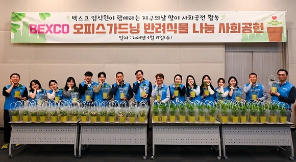 벡스코가 지난 17일 부산시사회공헌정보센터, 한국플랜테리어협회와 함께 ‘벡스코 오피스 가드닝 반려식물 나눔 사회공헌’을 시행했다고 밝혔다.