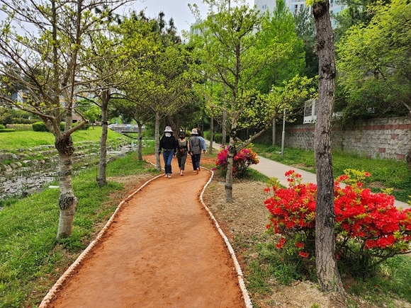 경남 김해시는 전국적인 맨발걷기 열풍에 발맞춰 율하천공원에 황톳길을 조성했다고 18일 밝혔다.