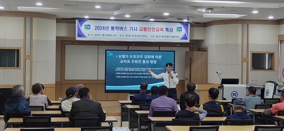 특히 이번 교육은 울산경찰청 치안정보과와 울산울주경찰서의 협조를 얻어 교통안전계 김범룡 계장의 교통안전교육으로 진행됐다. 교육 내용은 교통관련 법률 및 교통안전관리규정에 대한 안내와 안전한 버스 운행을 위해 운전자가 준수해야 할 내용이 포함됐으며 대학에 여학생이 많은 점 등을 고려한 범죄 및 안전사고 예방을 위한 교육도 실시됐다.