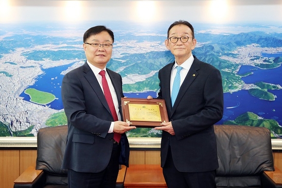 홍남표 창원시장, 이웃사랑 실천 재일교포 송옥식 씨에게 감사패