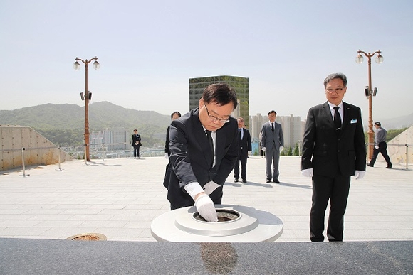 홍남표 창원시장이 제64주년 4·19혁명 기념일을 맞아 19일 오전 국립3·15민주묘지(마산회원구 소재)를 찾아 자유민주주의를 위해 희생한 민주 영령들에 참배했다.