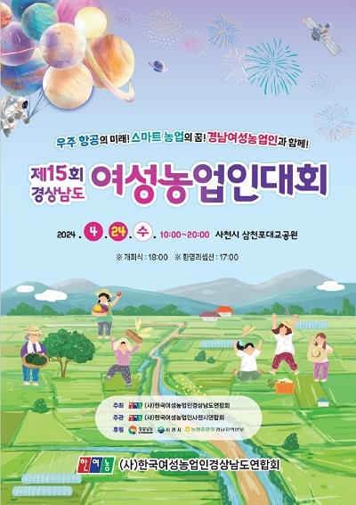 (사)한국여성농업인 사천시연합회가 주관하는 제15회 경상남도 여성농업인대회가 오는 24일 사천시 삼천포대교공원에서 열린다.