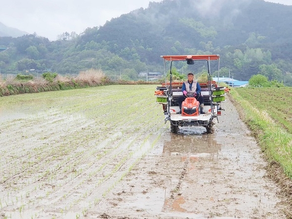면에 따르면 지곡면에서 매년 기능성 품종 조기벼를 재배하는 박철우 씨는 이날 덕암마을 앞들 논에 첫 모내기를 했다.