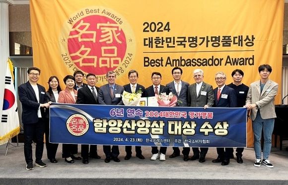 경남 함양군은 대표 특산물인 '함양 산양삼'이 23일 서울 한국프레스센터에서 열린 '2024 대한민국 명가명품대상' 시상식에서 지역명품브랜드 부문에 6년 연속 대상을 수상했다고 밝혔다.