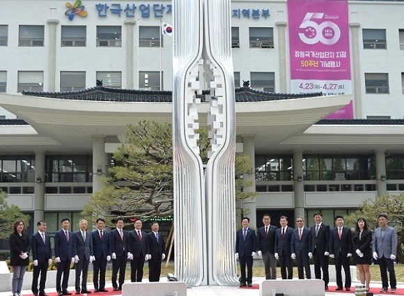 경남도와 창원시는 창원국가산업단지 지정 50주년을 기념하는 상징조형물 제막식을 24일 한국산업단지공단 경남지역본부에서 가졌다.