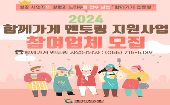 경남신용보증재단(경남신보)은 사업에 어려움을 겪고 있는 예비창업자 및 소상공인들을 성공사업주와 함께 고민하고 해결책을 찾아 실패리스크를 줄이고 안정적인 창업 또는 사업운영이 될 수 있도록 자체사업인 ‘함께가게 멘토링+ 플러스’(멘토링) 사업을 시행하고 있다.