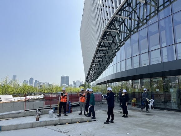 이번 점검은 올해 8월 준공 예정인 부산콘서트홀 건립공사의 진행 상황 확인 등을 위해 추진됐다. 김용학 사장은 현장 관계자로부터 공사 진행 현황 보고를 듣고 ▲단지 내 조경, 부대토목 공사 현장 시찰 ▲공연장 내부(객석, 무대기계, 무대조명 등) ▲로비 ▲리허설룸 ▲각종 편의시설 등에 대한 마감공사 진행 사항을 점검했다.